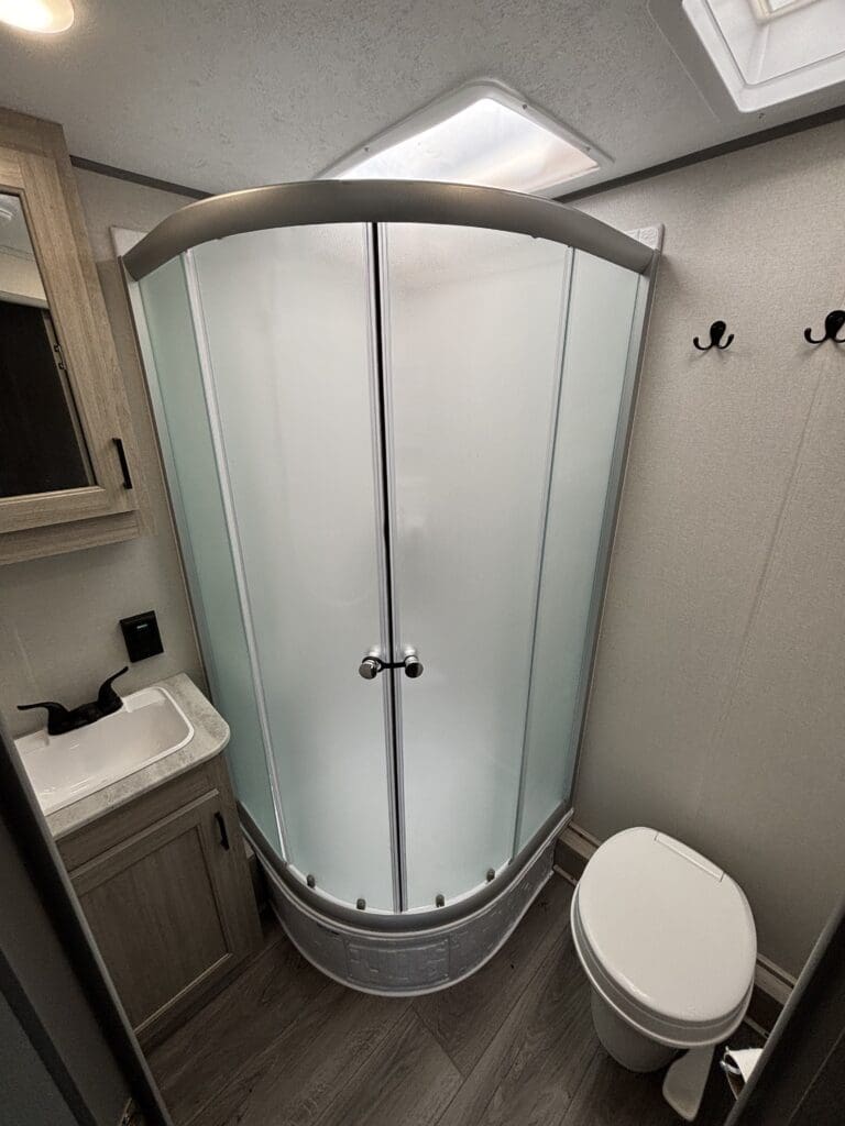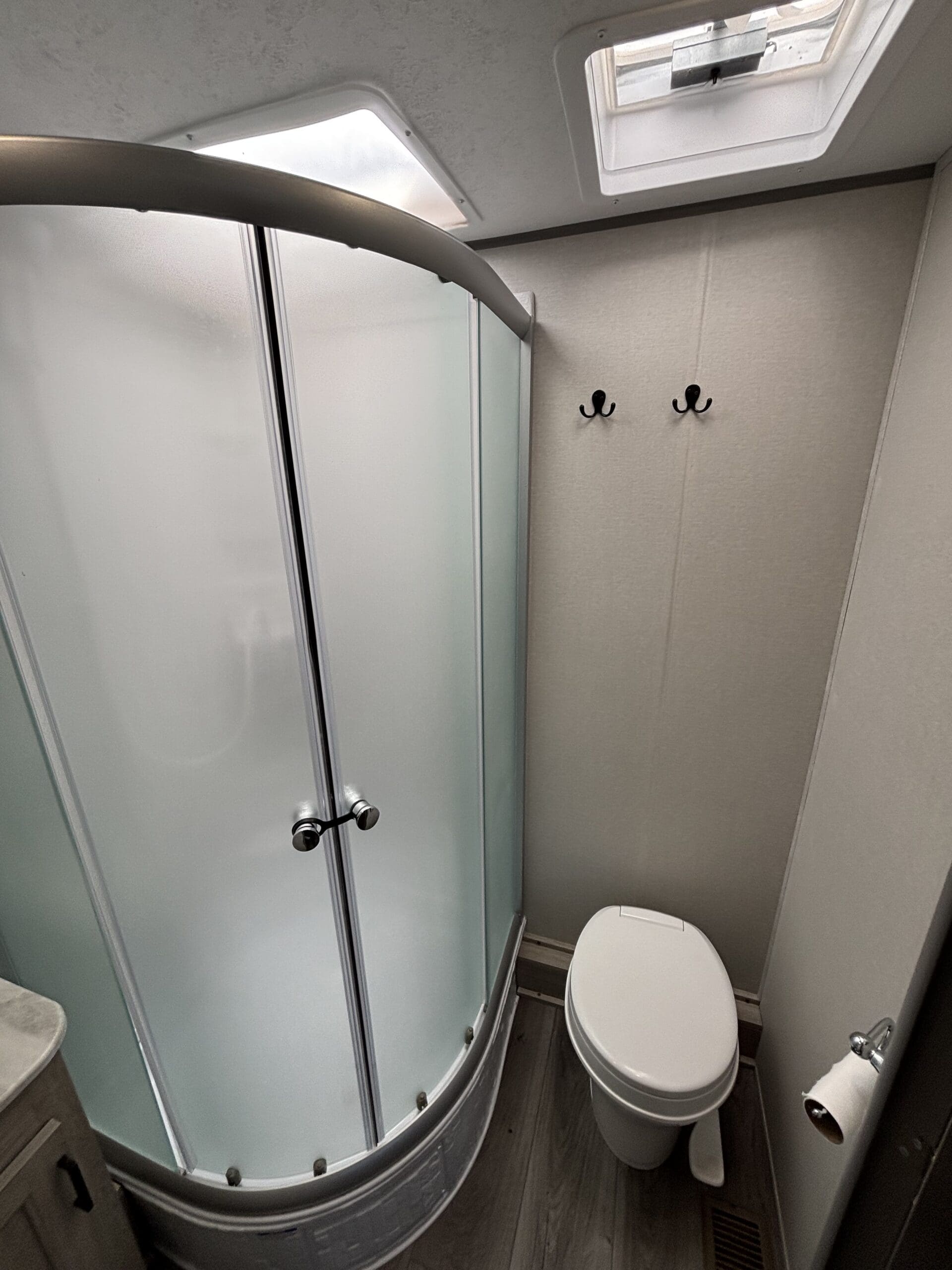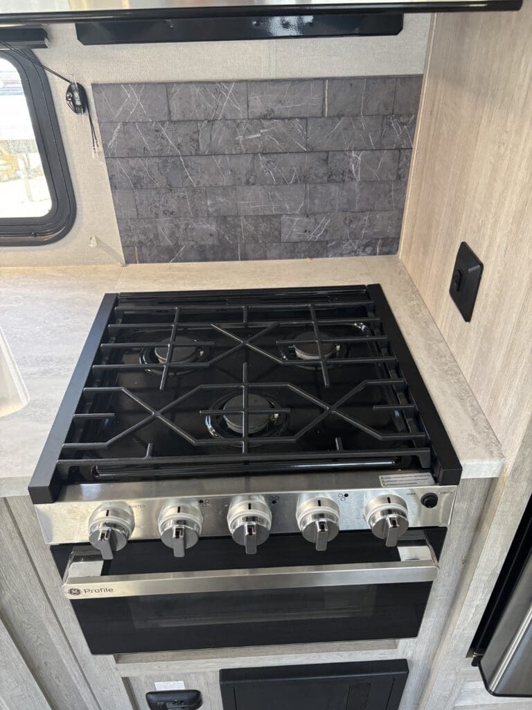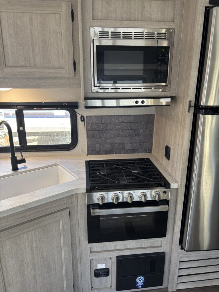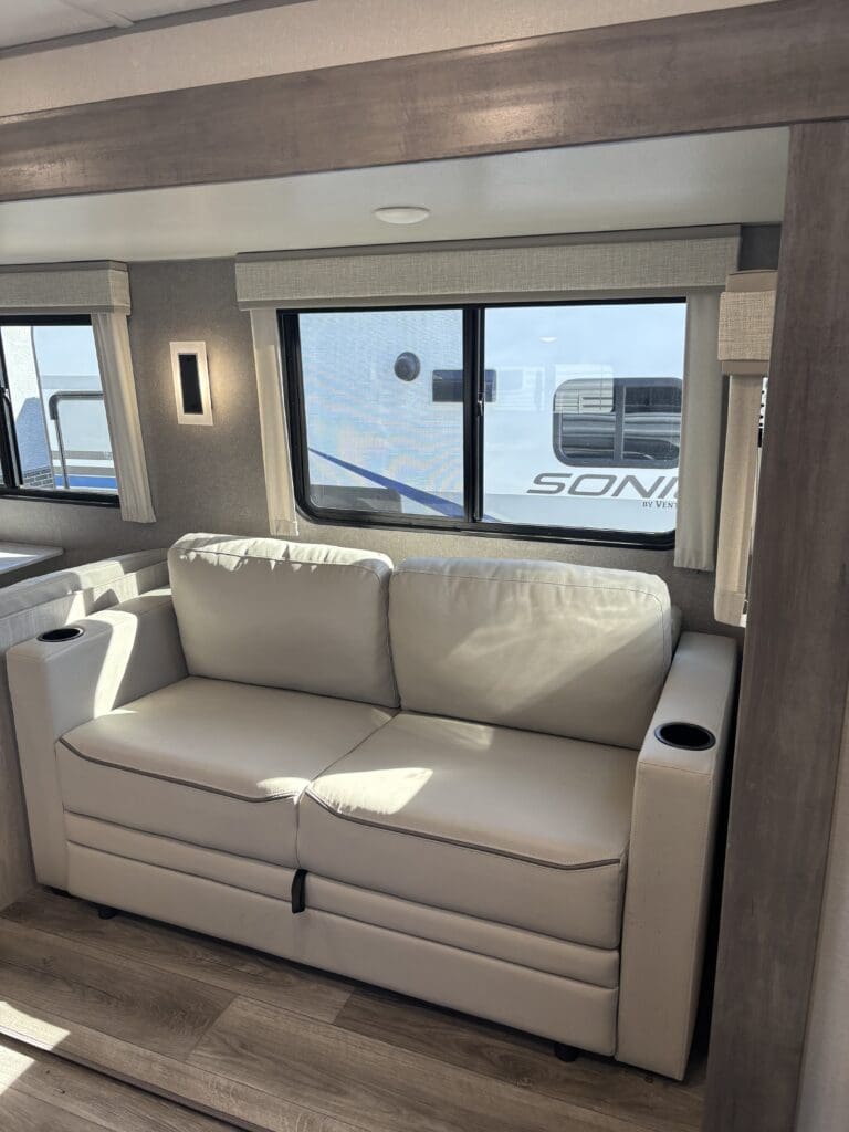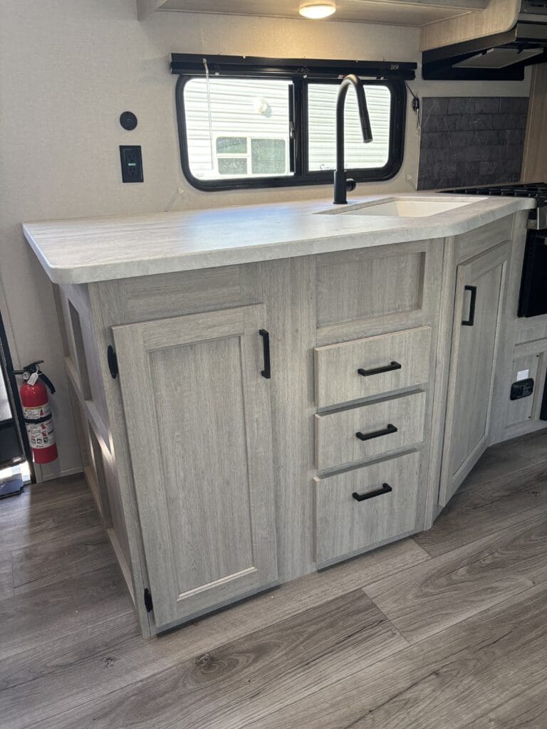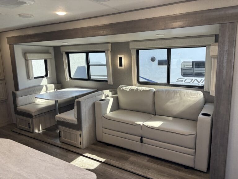 The popular 243RBS is the ideal couple’s coach! This floorplan boasts a full-size super slide with both a dinette and sofa, a spacious rear bathroom with a walk-in shower, extra-large pantry/wardrobe storage, a breakfast bar and private bedroom. The half-ton friendly towing weight and under 30’ real length makes this camper perfect for cross country travel or local weekend getaways!