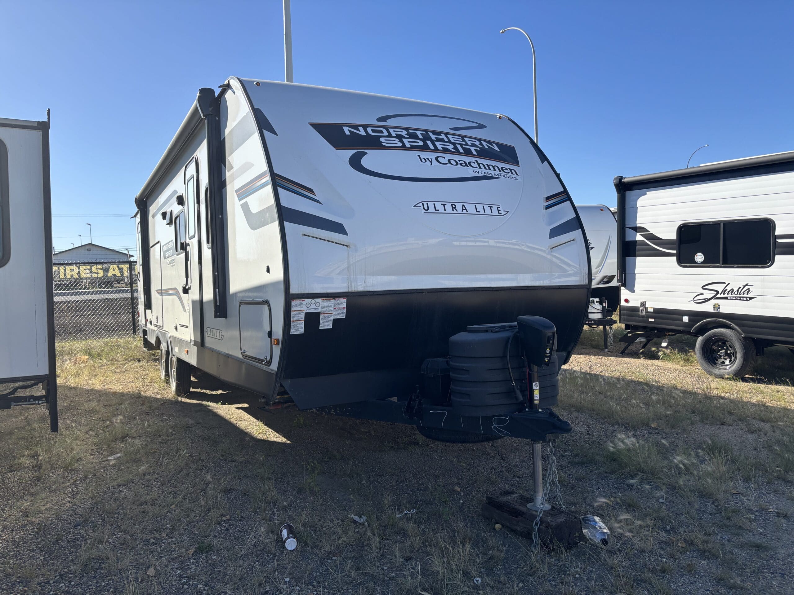 The perfect family trailer is here! Enjoy the many luxuries of this Coachmen model that provide not only practicality but also comfort. Summer days include hanging out and cooking under the awning from sunrise to sunset and rainy days include a home cooked meal indoors and rather a game of cards at the dinette or snuggled up on the couch watching your favourite movie. Even on those rainy days, enjoy staying dry under the awning. Had a full day at the beach and the kiddos covered in sand after a playful and memorable day? Use the direct entrance to the bathroom to rinse them off instead of tracking through the whole trailer!  This camper has it all, don’t miss out on being the stars of the campsite!
