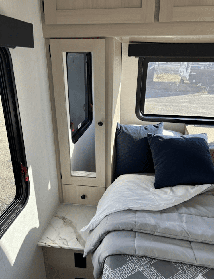 The perfect couples coach for those who want to maximize their camping and travelling experience! This floorplan is perfect for spending those sunny days outside and those rainy days inside, whether its just two people or if you want to have many over, the night will be here! The outdoor kitchen is perfect for doing all your cooking but don’t worry, the kitchen inside also has everything you need to make a homecooked meal too. Every detail of this floorplan was thoroughly thought out, from the inside to the outside, there’s so much to love!