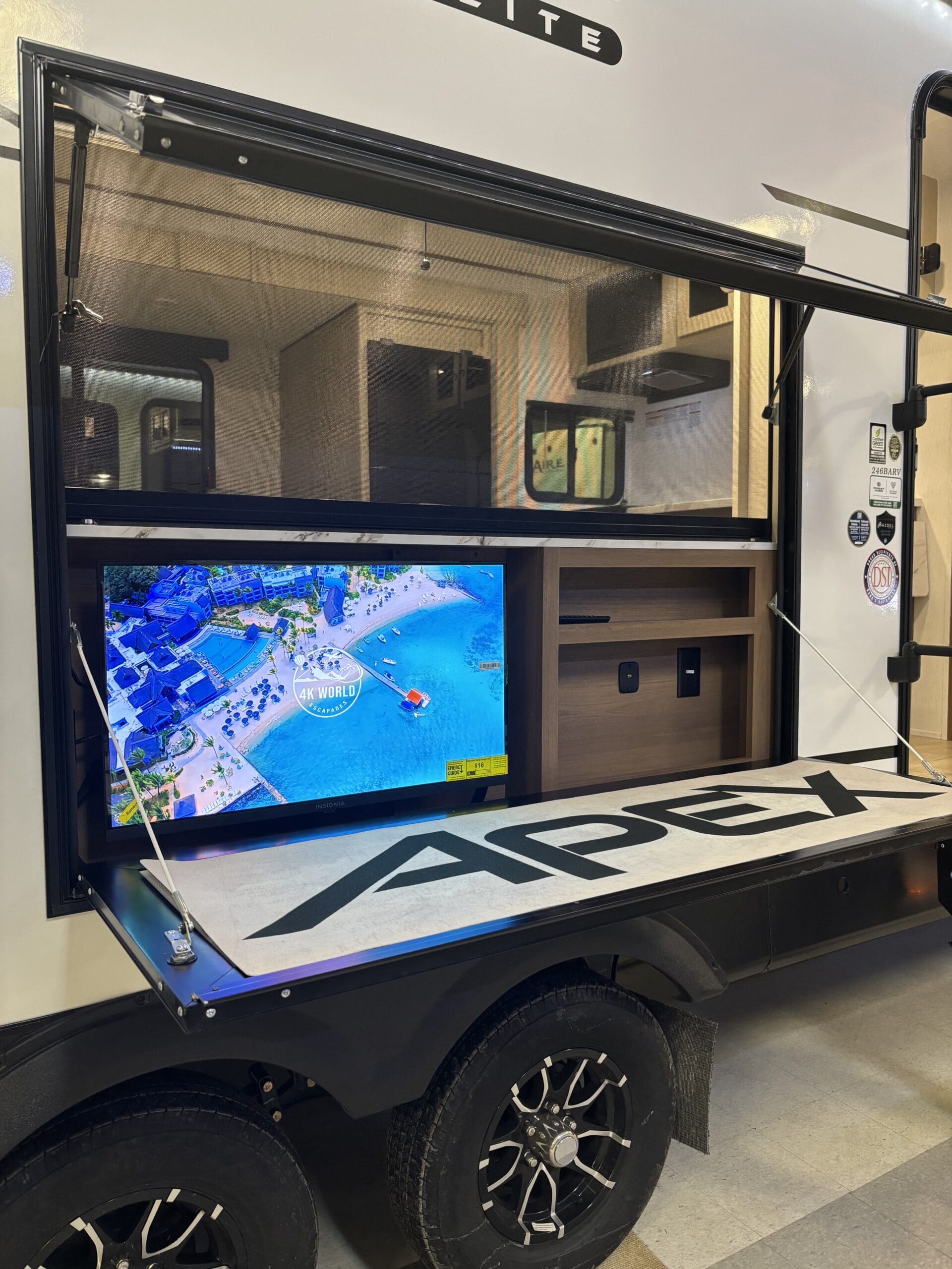 Say hello to the entertainers dream trailer… bunk edition!! This camper is for the family that loves to entertain or make the most out of their camping experience! Whether you’re outside or inside, this trailer is equipped for it, with both a TV on the inside and outside, an eating/serving bar both inside and out, and the ability to cook in or out, this camper will truly maximize your camping experience!