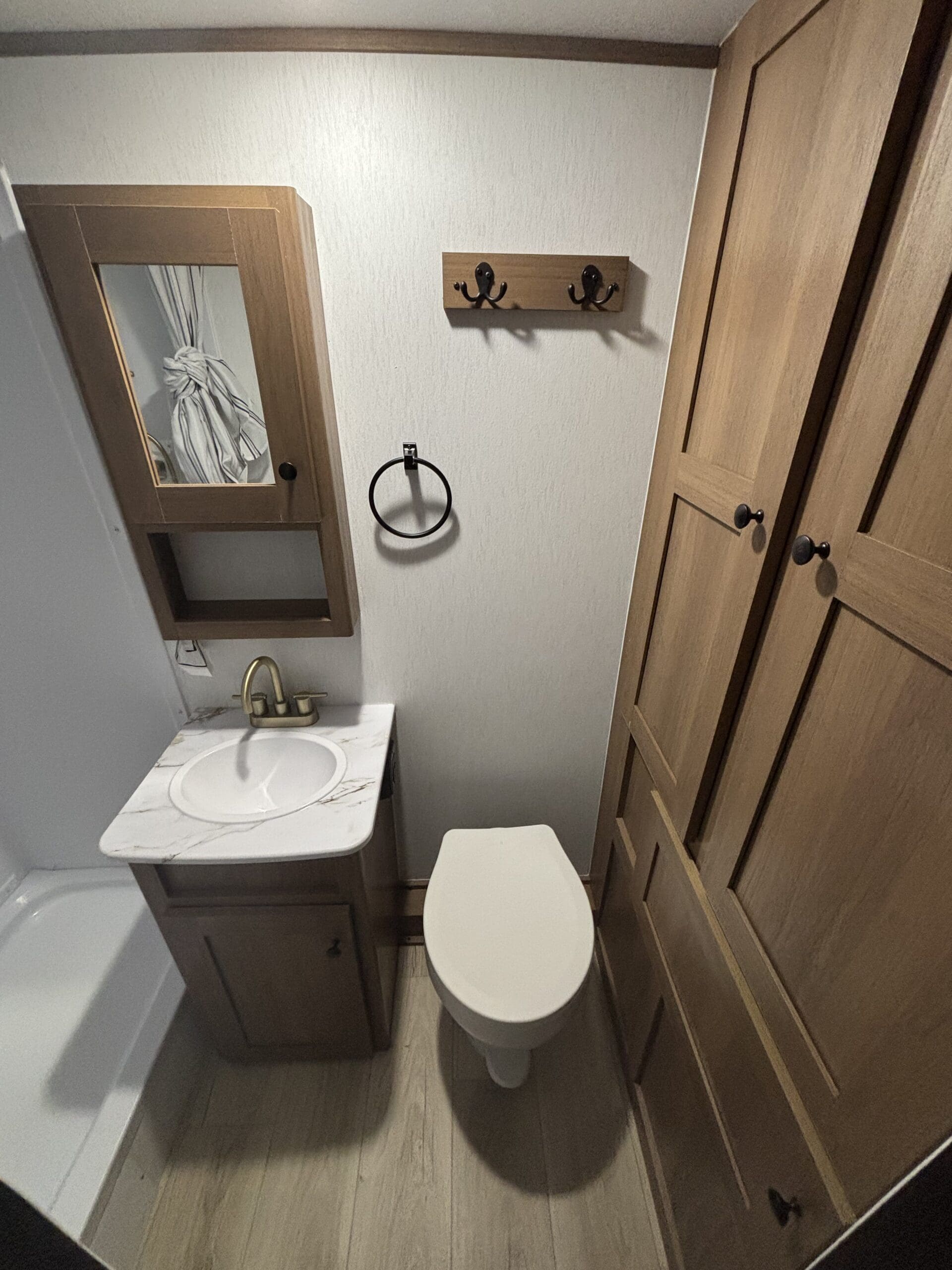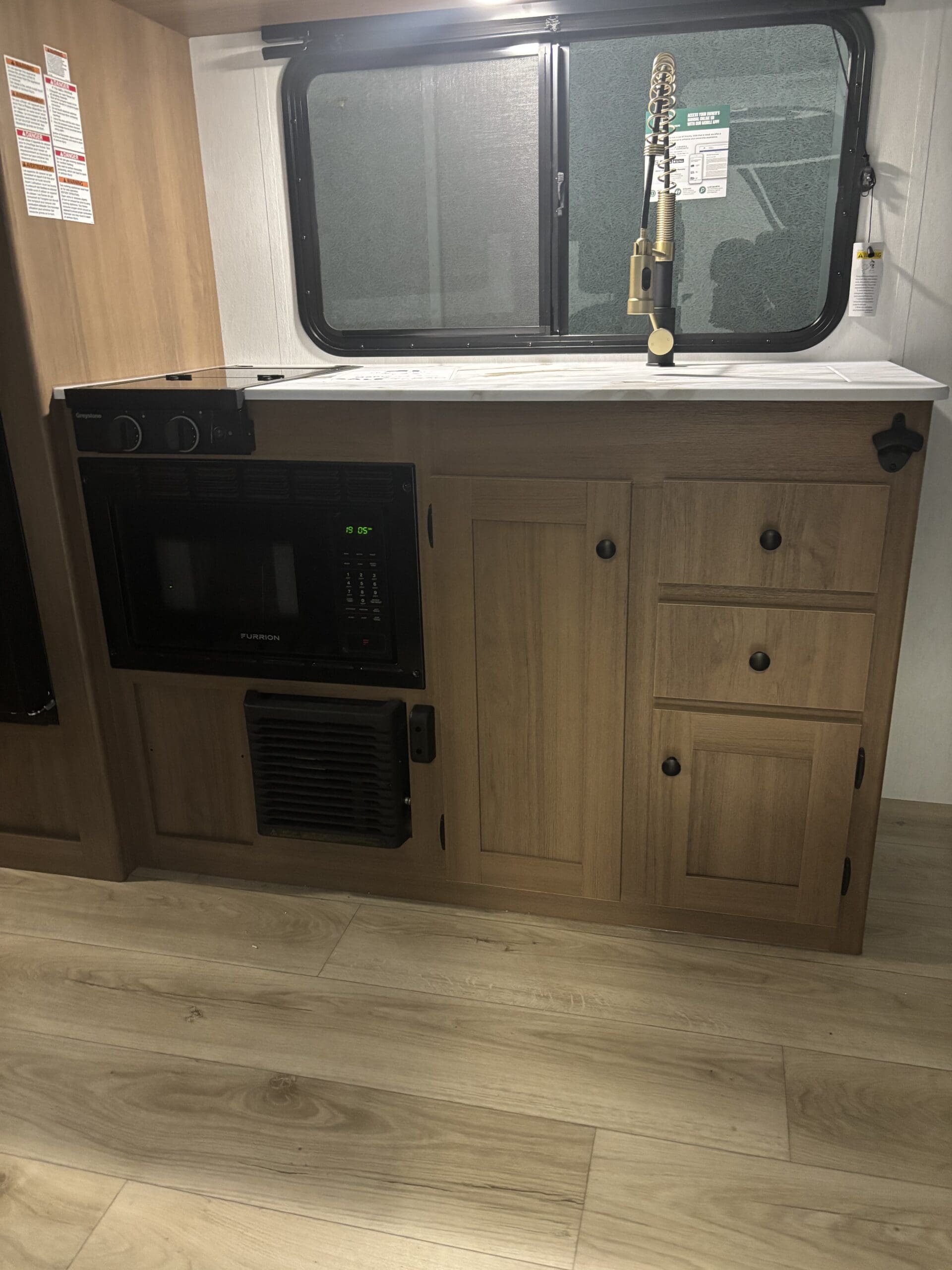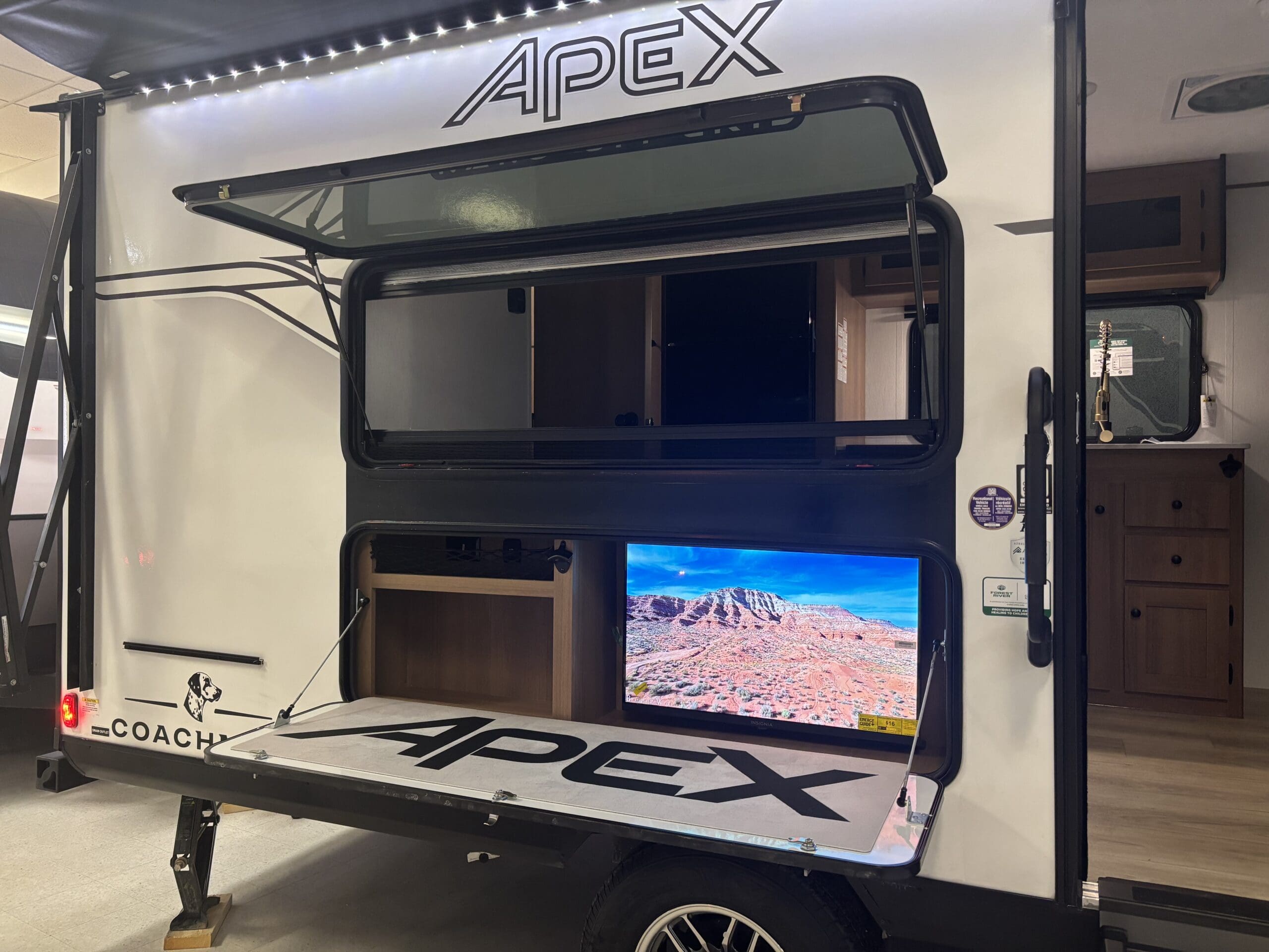 At just 21′ 5″ and under 3,500 lb. dry, the Apex Nano 181RB is a minimalist adventurer’s dream. It is light enough for SUVs or half-ton trucks, yet delivers 52 gallons of fresh water, a rear bath, indoor-outdoor bar top design, perfect for couples chasing big views and weekend escapes.