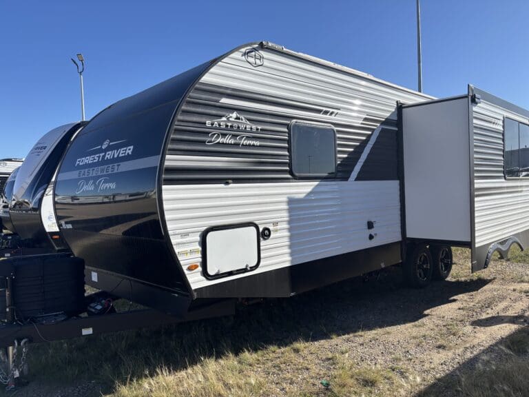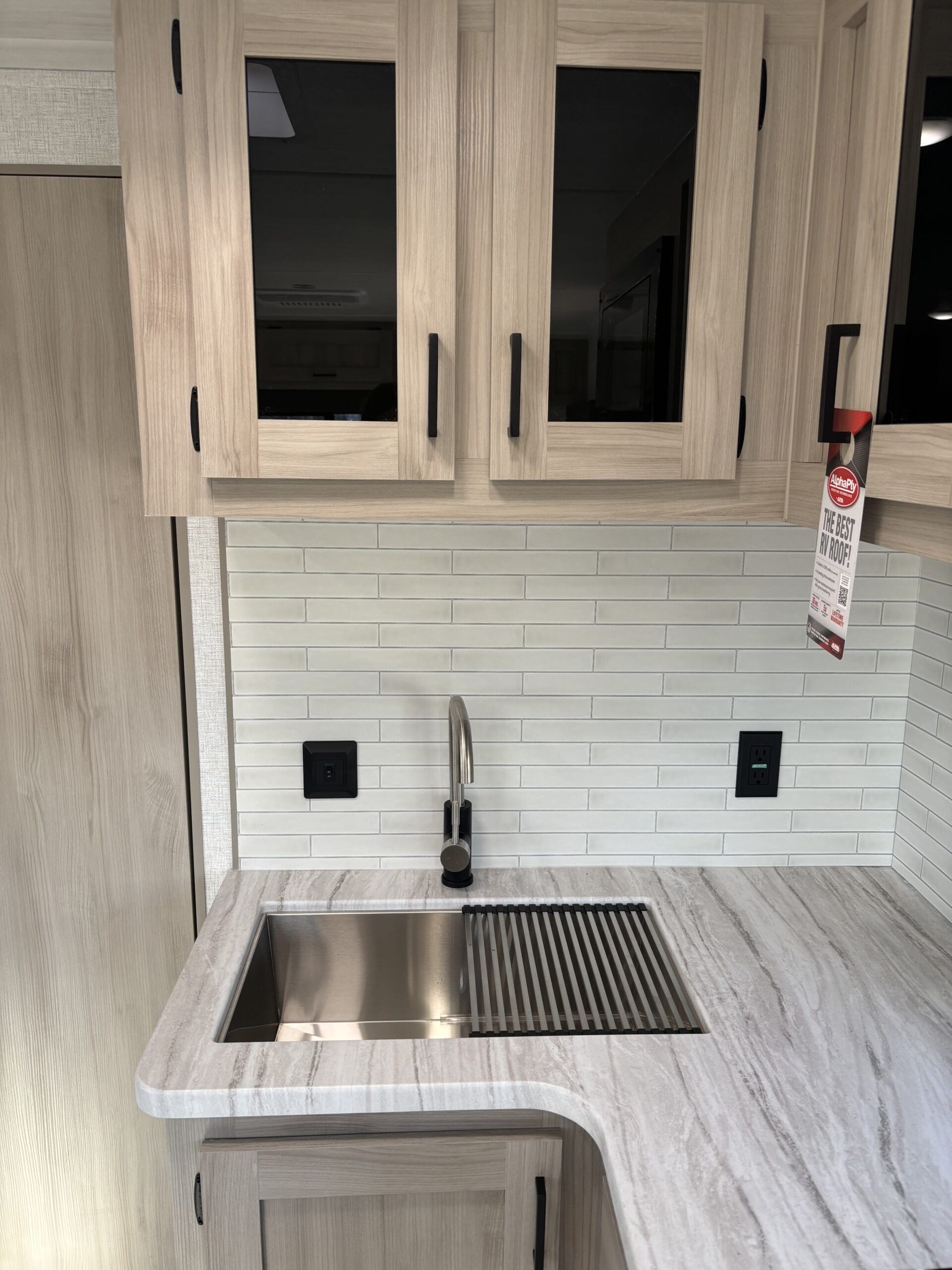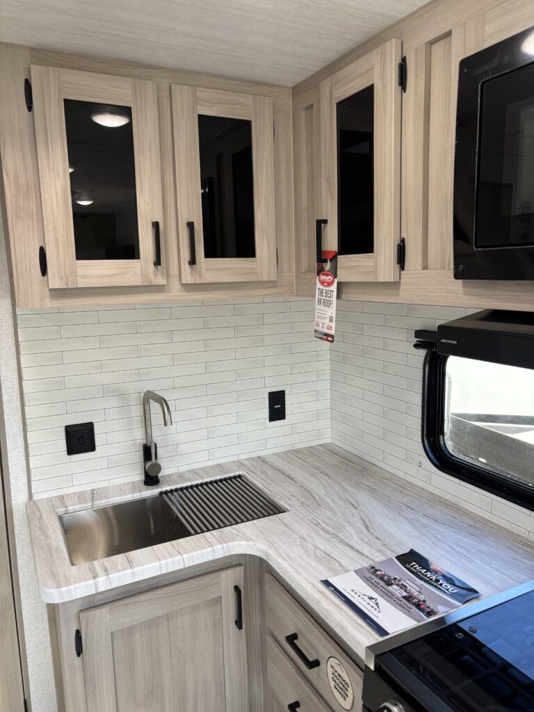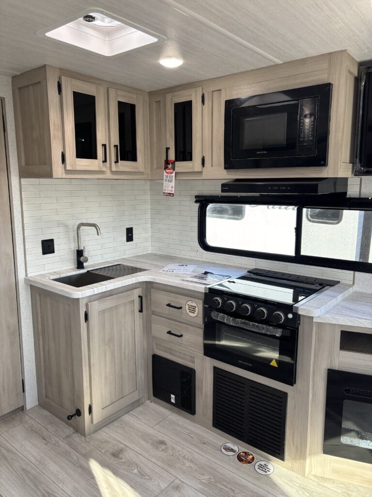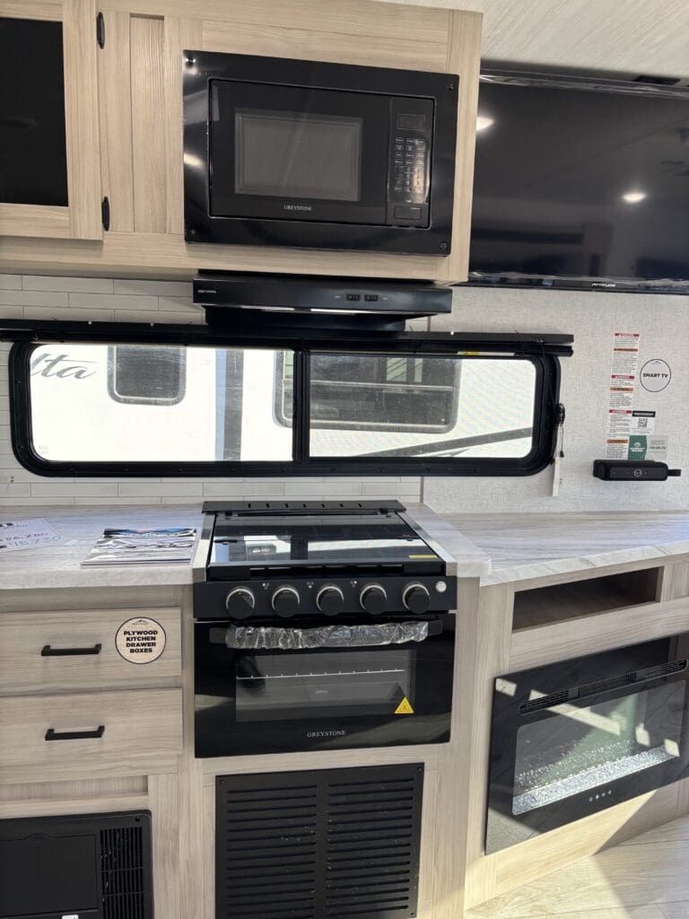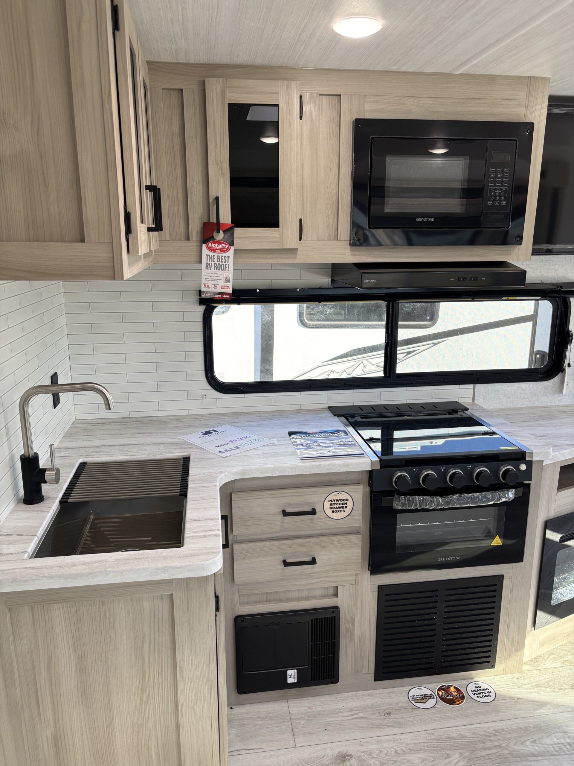 Welcome to the perfect couples floorplan! This camper is under 30ft total length but you don’t have to sacrifice having any of the luxuries. The oversized u-shaped dinette in the rear of the trailer is surrounded with windows and is perfect for dinners or game nights! Ready to relax after a fun-filled day? Sink into the comfortable reclining theatre seats that puts you in perfect view of the TV and fireplace. Other notable features include a gorgeous but functional kitchen, a walkthrough bathroom, and a private front bedroom with a separate entry/exit door. Enjoy highly desirable features like powered stabilizer jacks, front power jack, 200w solar, a tankless water heater, a 12V fridge, and so much more!