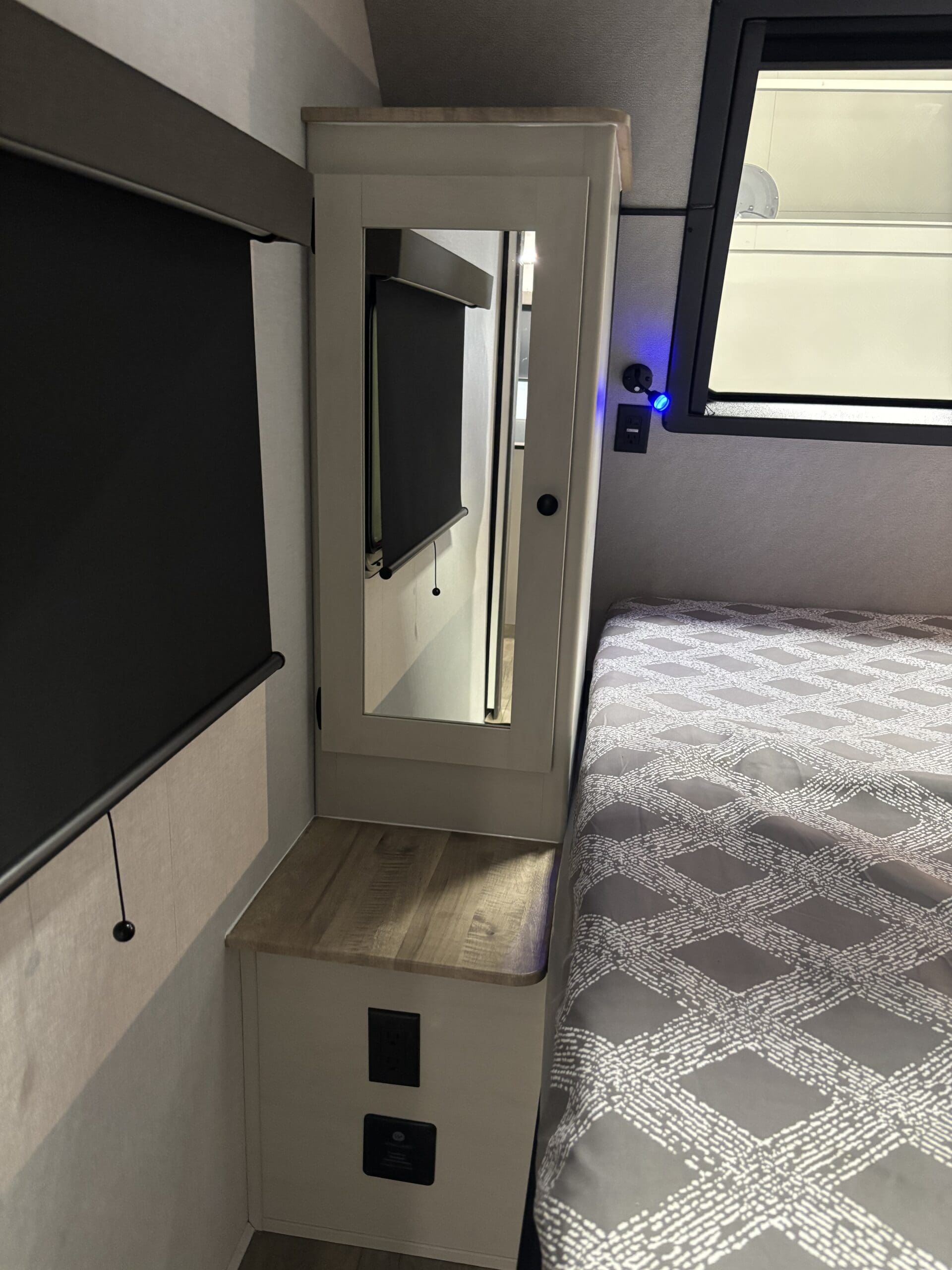 This midsize bunk floorplan is perfect for the family. Coming in under 30 feet overall and just under 6000 lb., the 2457BH features a booth dinette, a breakfast bar with chairs, huge pantry, an abundance of counterspace, double over double bunks, and an outside kitchen. The bottom bunk lifts up to make use of our “Store More” cargo center, which is perfect for bikes, coolers, kayaks, totes, or any other storage items.