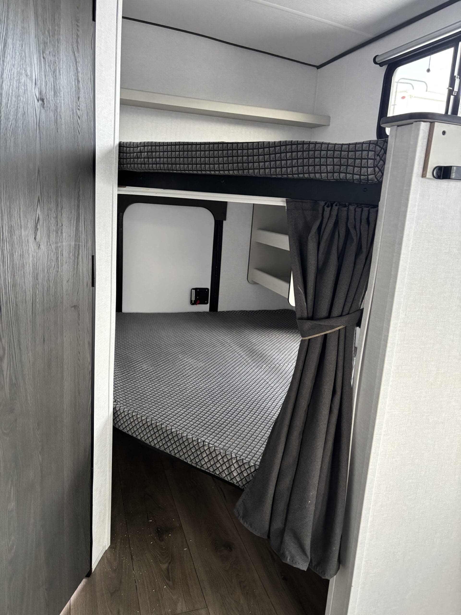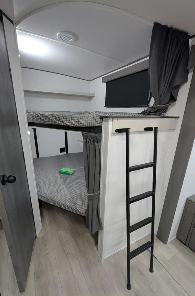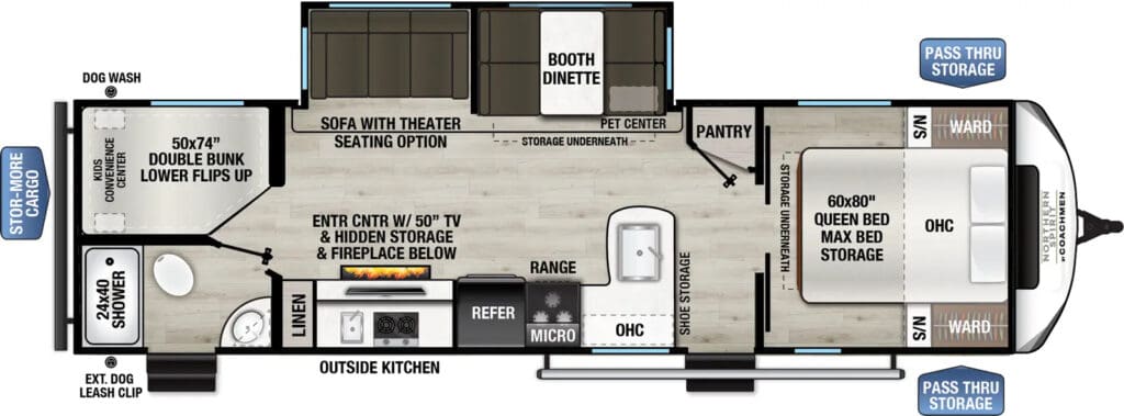 Spirit’s most popular bunk model is ideal for a large family. Two entry doors, a large outside kitchen, and a rear storage door make this model a popular seller.